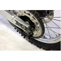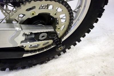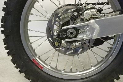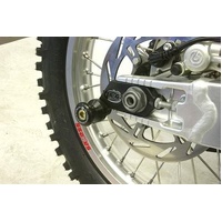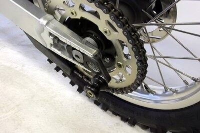 Are they cotton reels or swingarm protectors? Well they are both really!! The cotton reel is mounted to a special adjustable bracket (included with the kit) which brings the cotton reel away from the exhaust/can area. Due to the position that the cotton reel becomes set in with the bracket, these protectors give protection to the swingarm area and therefore this product has a double aspect as the bike can still be lifted with a paddock stand on the cotton reel. The cotton reel can also be removed and mounted to the paddock stand mounting point to allow the bike to be lifted when the rear wheel is being removed. This product allows the machine to be lifted on a paddock stand.