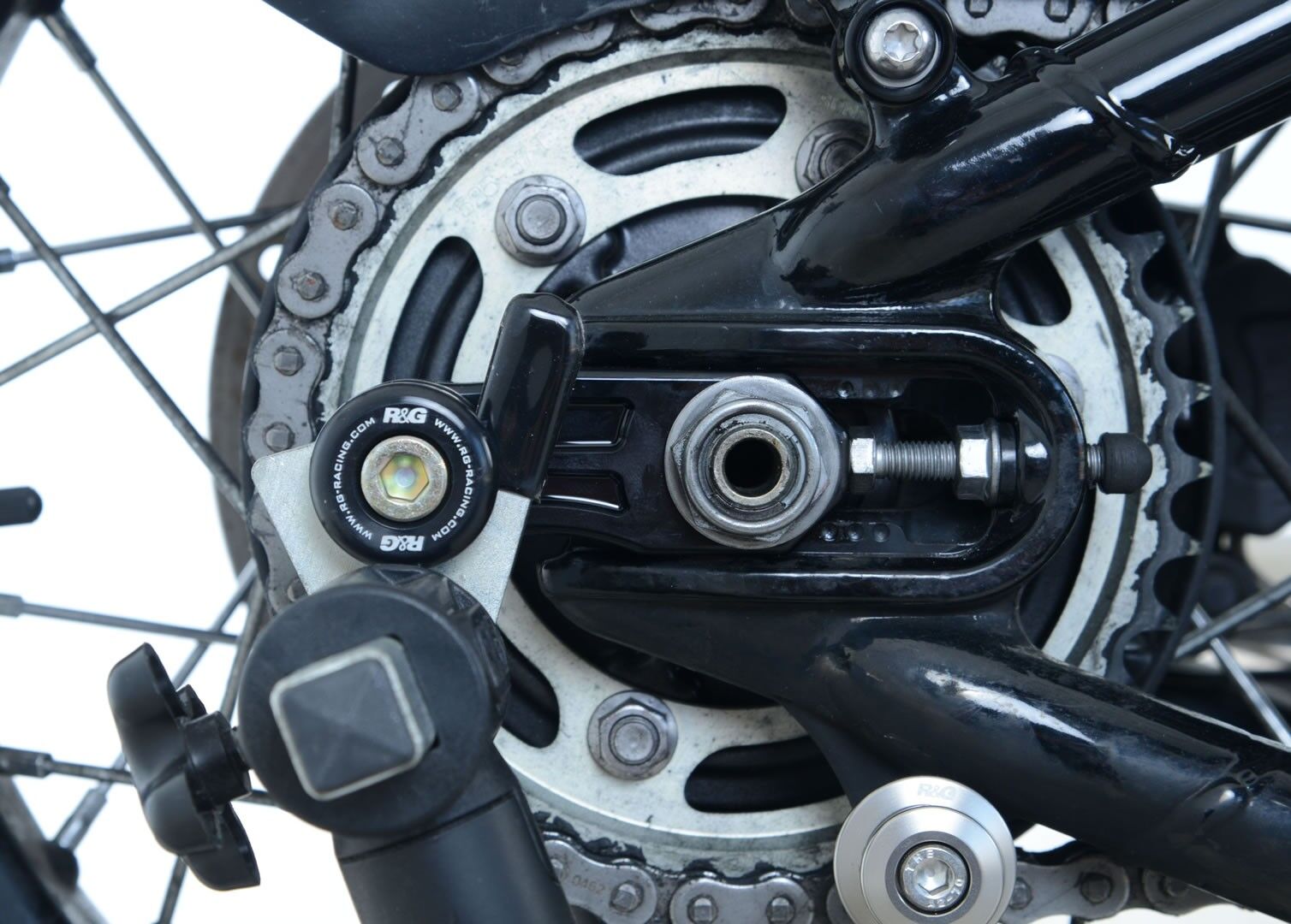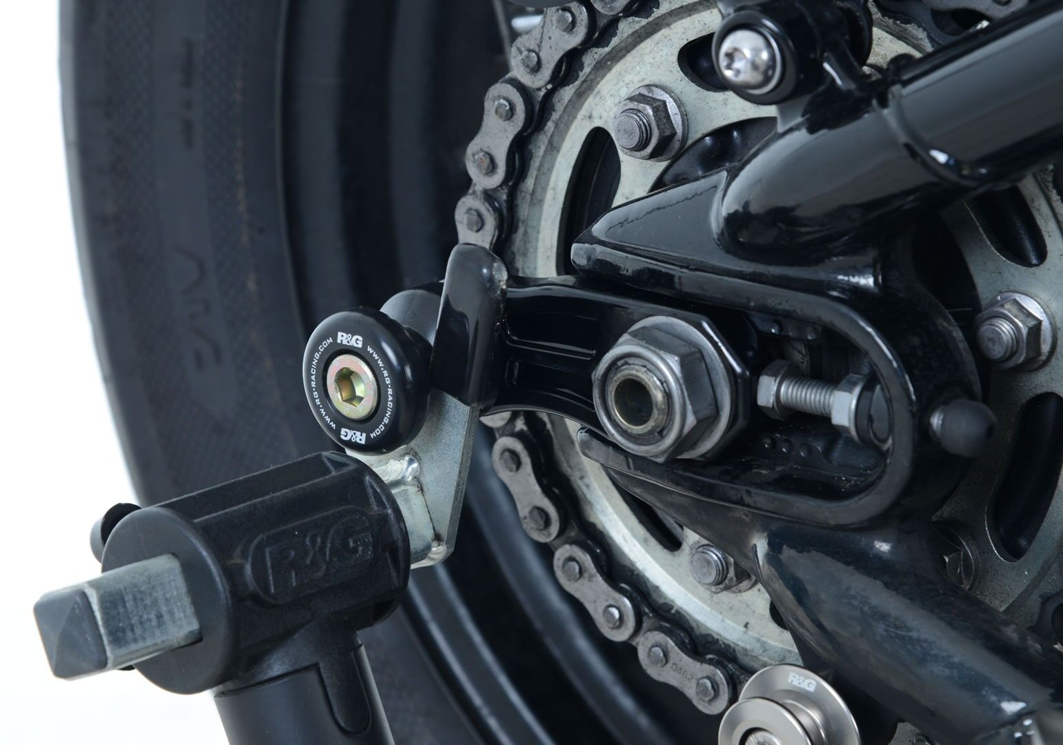R&G Offset Cotton Reels protect the swingarm and core swingarm components from damage in the event of a crash, slide or drop. Doubling up as paddock stand bobbins too, they allow the motorcycles rear wheel to be lifted into the air with the use of a paddock stand to perform chain adjustments, chain lubrication and cleaning! This particular pair of R&G Offset Cotton Reel kit has been specially designed to move the Cotton Reel/Paddock Stand Bobbin location further rearward as if paddock stand bobbins are installed into the OE swingarm position they'll impact the OE exhaust during suspension travel, causing damage and suspension performance issues.