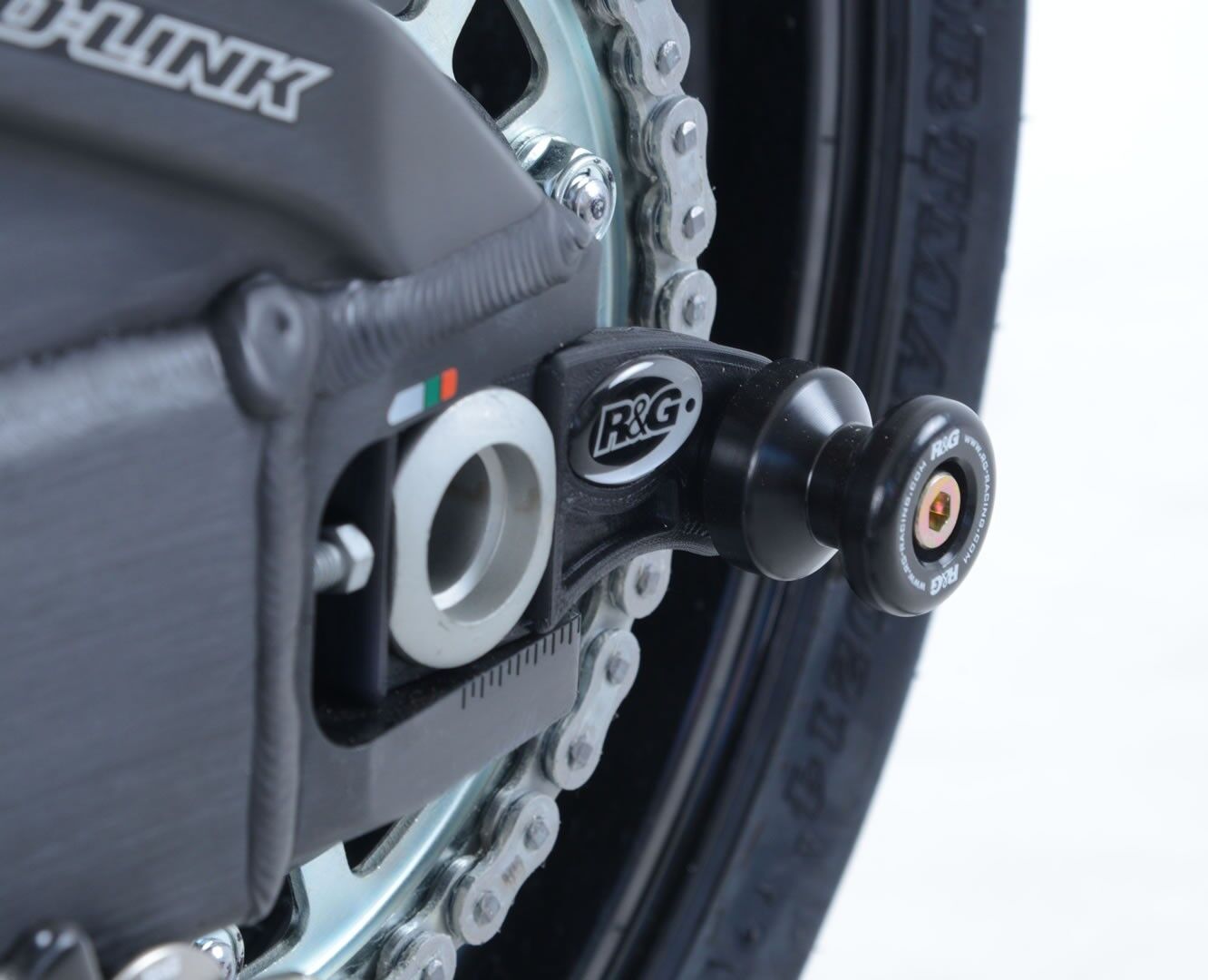 This particular pair of R&G Offset Cotton Reel kit has been specially designed to move the Cotton Reel/Paddock Stand Bobbin location further rearward as if paddock stand bobbins are installed into the OE swingarm position they could potentially impact the OE exhaust during suspension travel, causing damage and suspension performance issues.