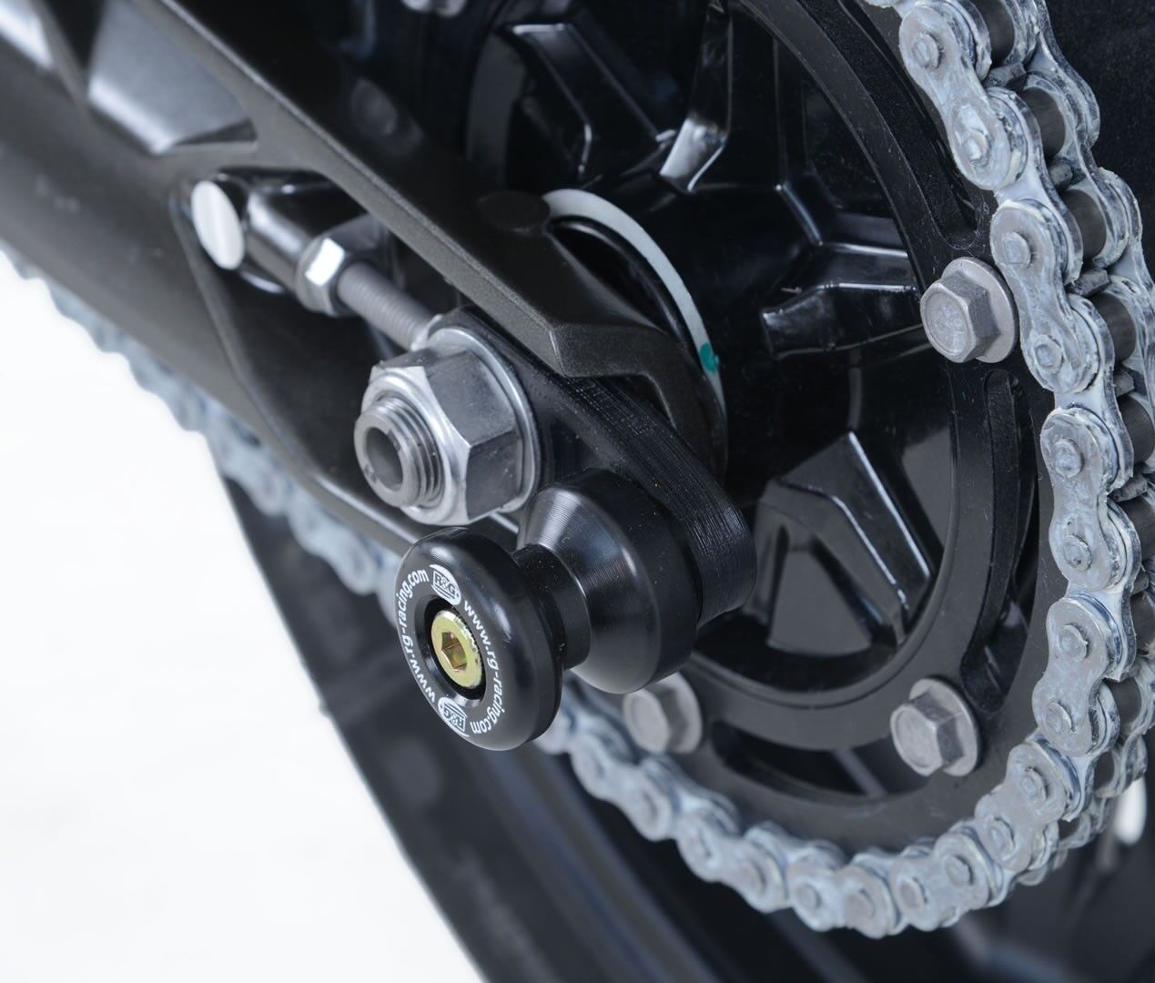 R&G Offset Cotton Reels protect the swingarm and core swingarm components from damage in the event of a crash, slide or drop. Doubling up as paddock stand bobbins too, they allow the motorcycles rear wheel to be lifted into the air with the use of a paddock stand to perform chain adjustments, chain lubrication and cleaning!