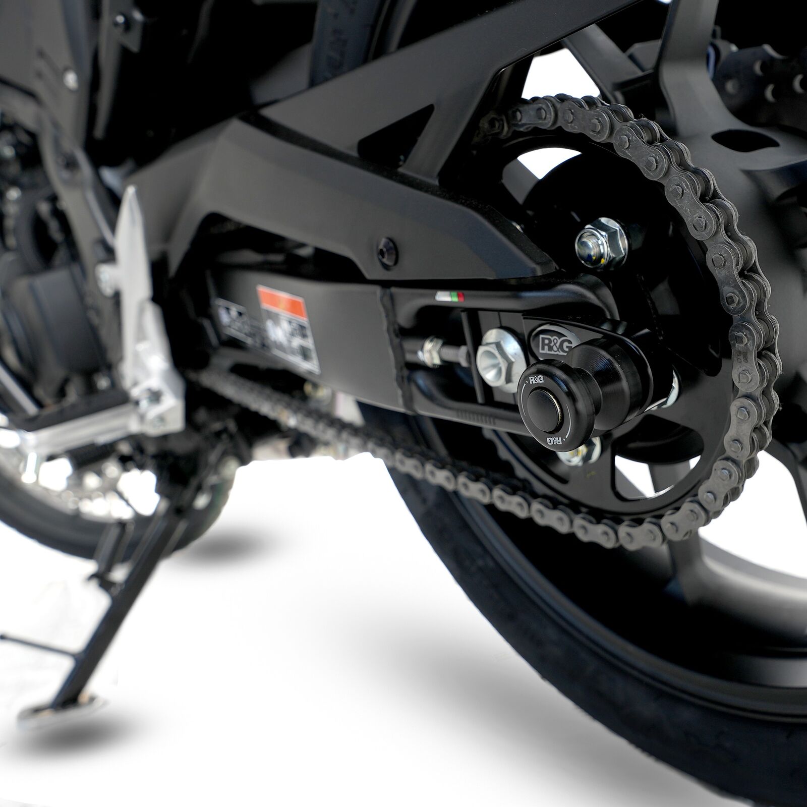 Suitable for the Suitable for the Honda CBR5005R '19-, CB500F '19-, CB400X '19-, CB500X '19-, CB750 Hornet,CB500 Hornet '24- models. Are they cotton reels or spindle sliders? Well they are both really!! The Cotton Reel is mounted to a special, Stainless steel bracket. The product will give protection to the swingarm area in most crashes. Also the bike can be lifted on the Cotton Reels, using a paddock stand with hooks (suggest R&G code SH0001).