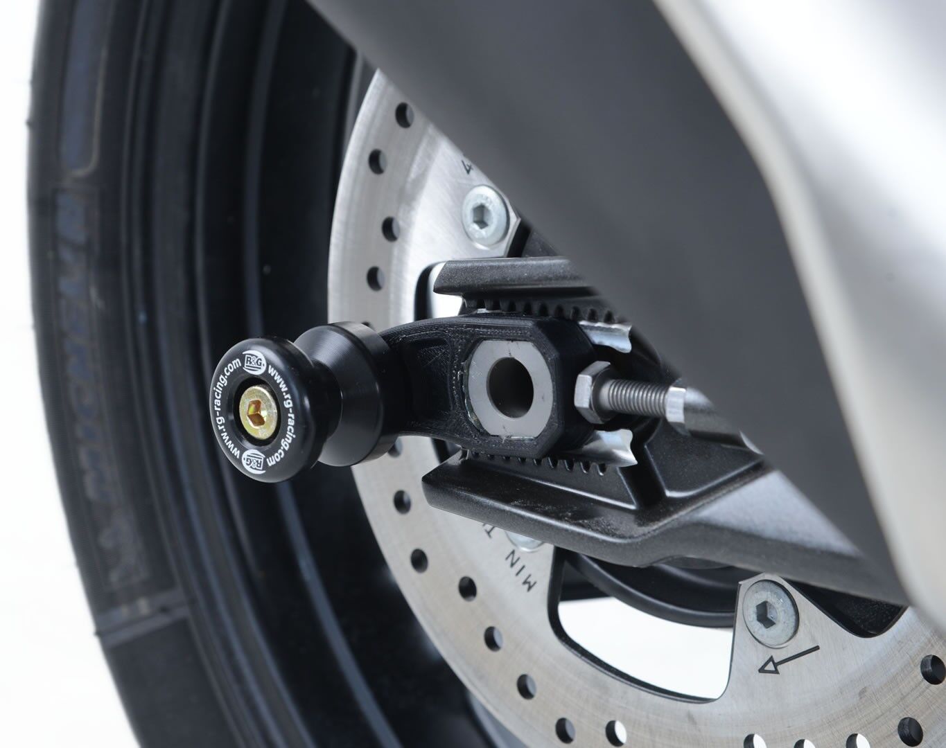 This particular pair of R&G Offset Cotton Reel kit has been specially designed to move the Cotton Reel/Paddock Stand Bobbin location further rearward as conventionally swingarm mounted cotton reels could/would impact the OE exhaust during suspension travel, causing damage and suspension/handling performance issues.