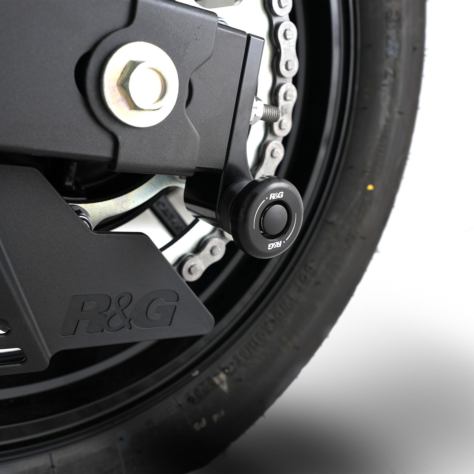 R&G Offset Cotton Reels protect the swingarm and core swingarm components from damage in the event of a crash, slide or drop. Doubling up as paddock stand bobbins, they allow the motorcycle’s rear wheel to be lifted with the use of a paddock stand, in order to carry out cleaning or chain lubrication, or for storage.