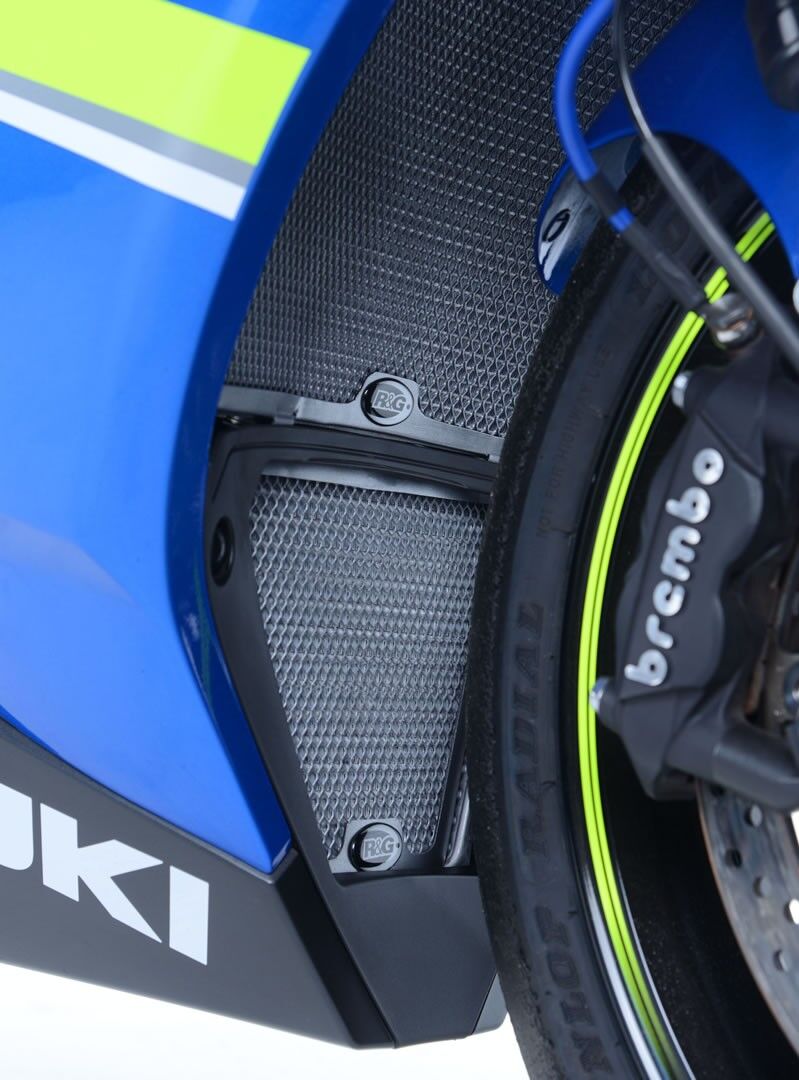 This R&G Oil Cooler Guard for the Suzuki GSXR1000 '17- '24 / GSX-R1000R '17- '24 is available in a range of powder coat finishes for a long lasting durable finish. Made from aluminium mesh encased in an aluminium frame, the neat design adds to the looks of the bike as well as keeping the radiator/oil cooler well protected from stones and road debris kicked up by the wheel or by other road users.