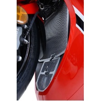 Made from pressed aluminium. They improve the looks of your bike as well as help protect your expensive and vulnerable radiator from flying road debris. Installing behind the OE plastic guard, the R&G mesh prevents smaller road debris and stones from hitting the radiator that can easily pass past the OE guard.