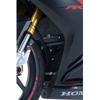 Available in a range of powder coat finishes to suit the Honda CBR250RR '17- models. This R&G Radiator Guard is made from pressed aluminium. They improve the looks of your bike as well as help protect your expensive and vulnerable radiator from flying road debris be it on the road or the track day.
