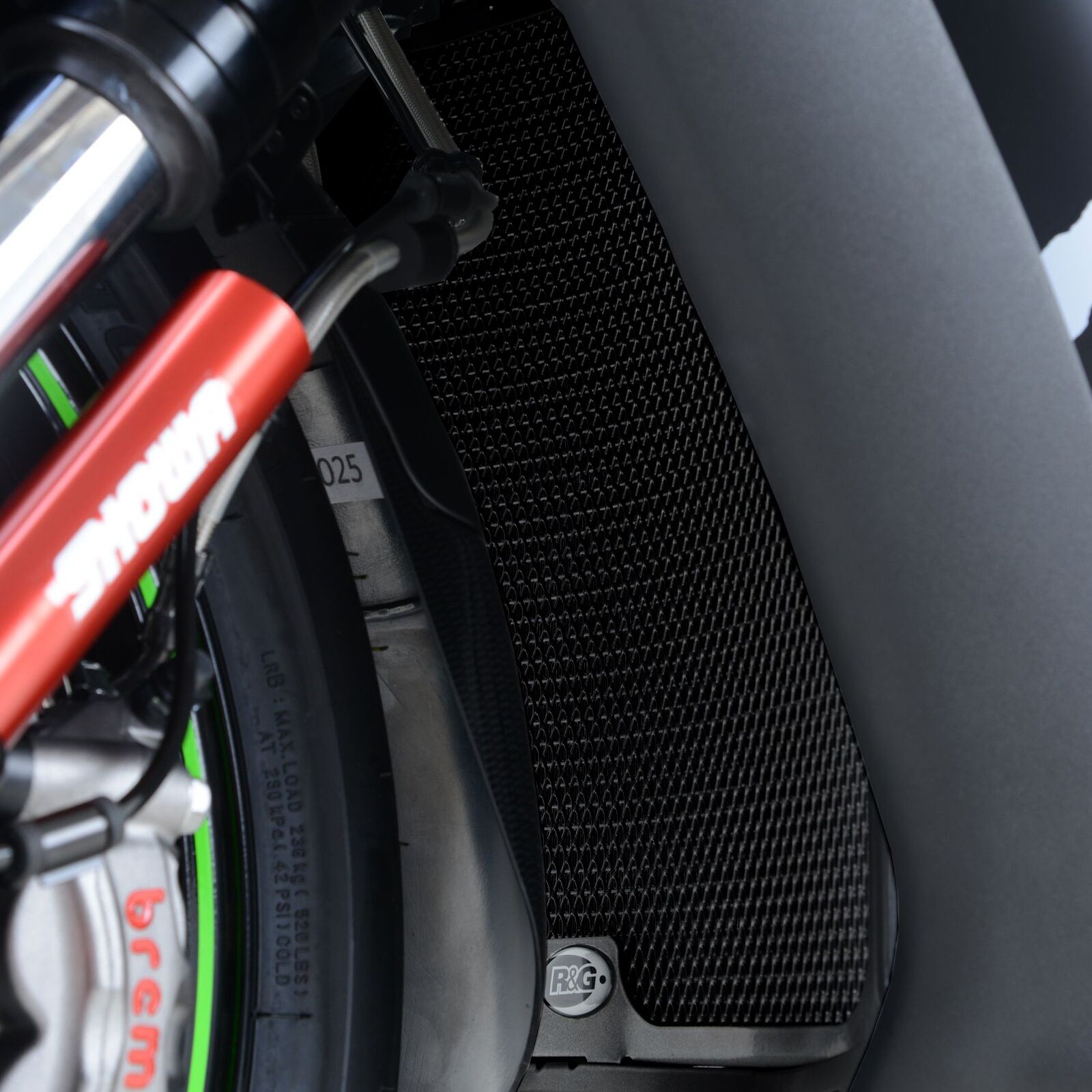 Available in durable powder-coated black finish to fit the Kawasaki ZX10R '08-'20 models. This Radiator Guard is made from pressed aluminium and feature a neat, seamless frame (where applicable).  They improve the looks of your bike and help to protect your expensive and vulnerable radiator from flying debris. Please note: The R&G Downpipe Grille is NOT included with the guard but is available seperately.