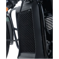 Available in a durable powder coated black finish to fit the Harley Davidson Street 500 '14-, Street 750 '15- models. This Radiator Guard is made from pressed aluminium and features a neat, seamless frame, which is installed behind the original, plastic guard.  It helps further protect your expensive and vulnerable radiator by deflecting rocks and fine road debris.