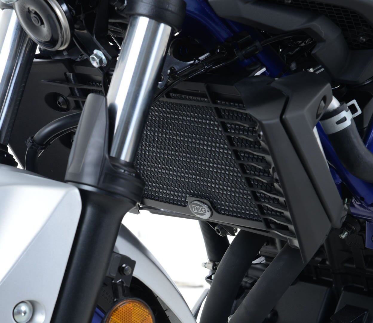Available in black, dark blue and red powder coat finishes to fit the Yamaha YZF-R25 '14- and YZF-R3 '15- '24 and the MT-25 and Yamaha MT-03 '16- models. Made from pressed aluminium and feature a neat, seamless frame (where applicable).  They improve the looks of your bike and help to protect your expensive and vulnerable radiator from flying debris.