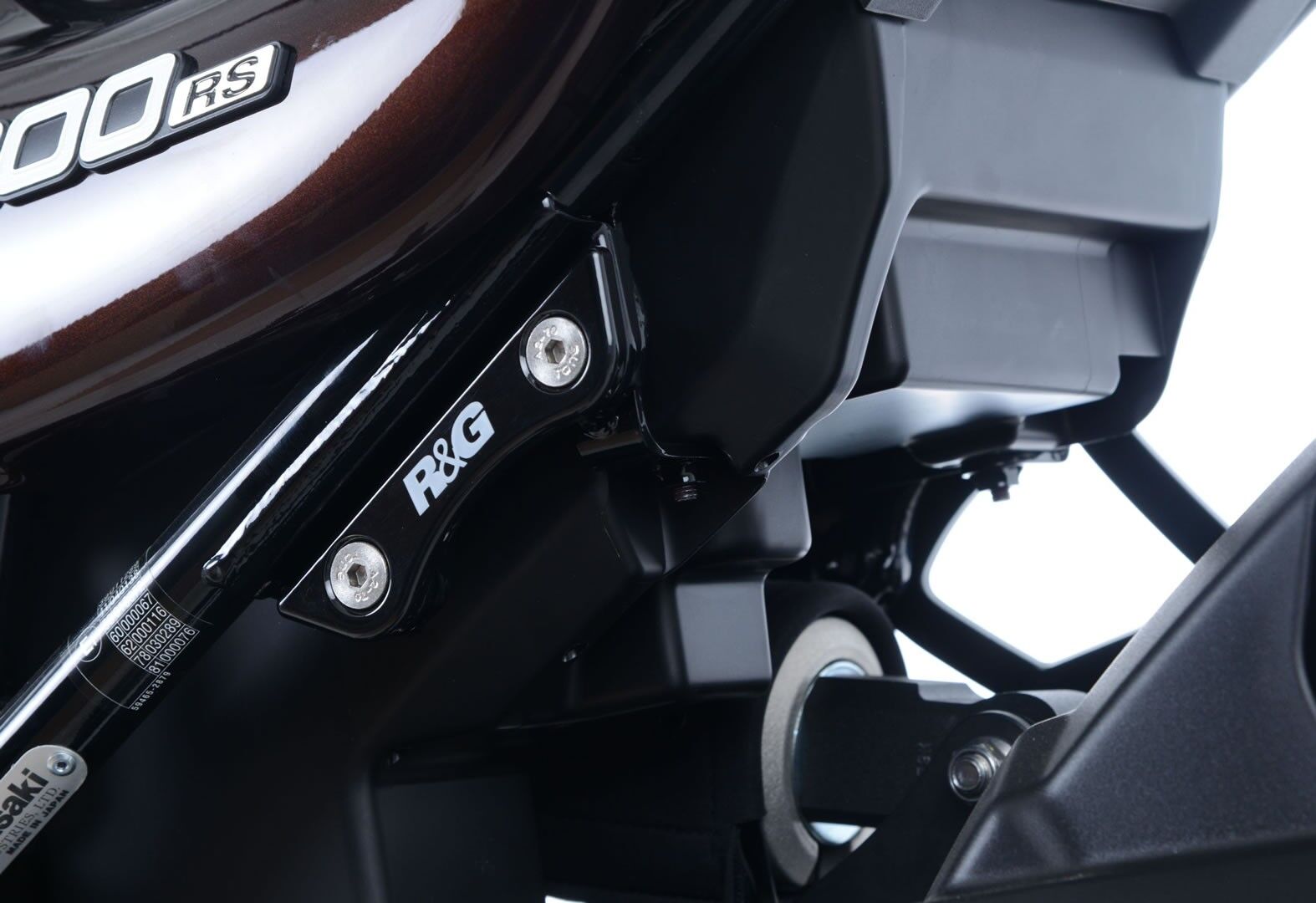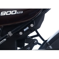Once you have removed the pillion footrests, fill the void left behind and cover those otherwise exposed holes in the sub-frame with an R&G blanking plate.