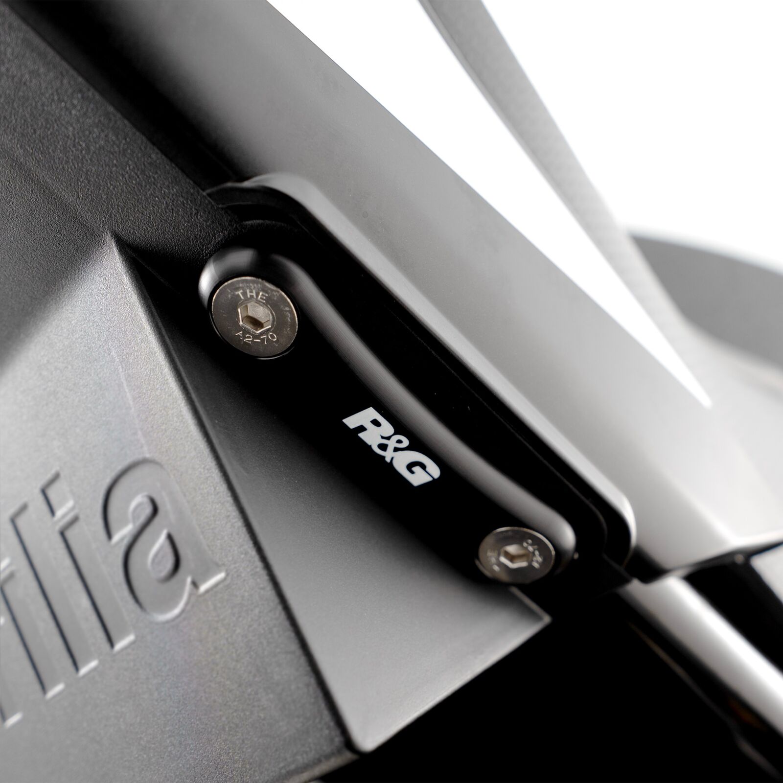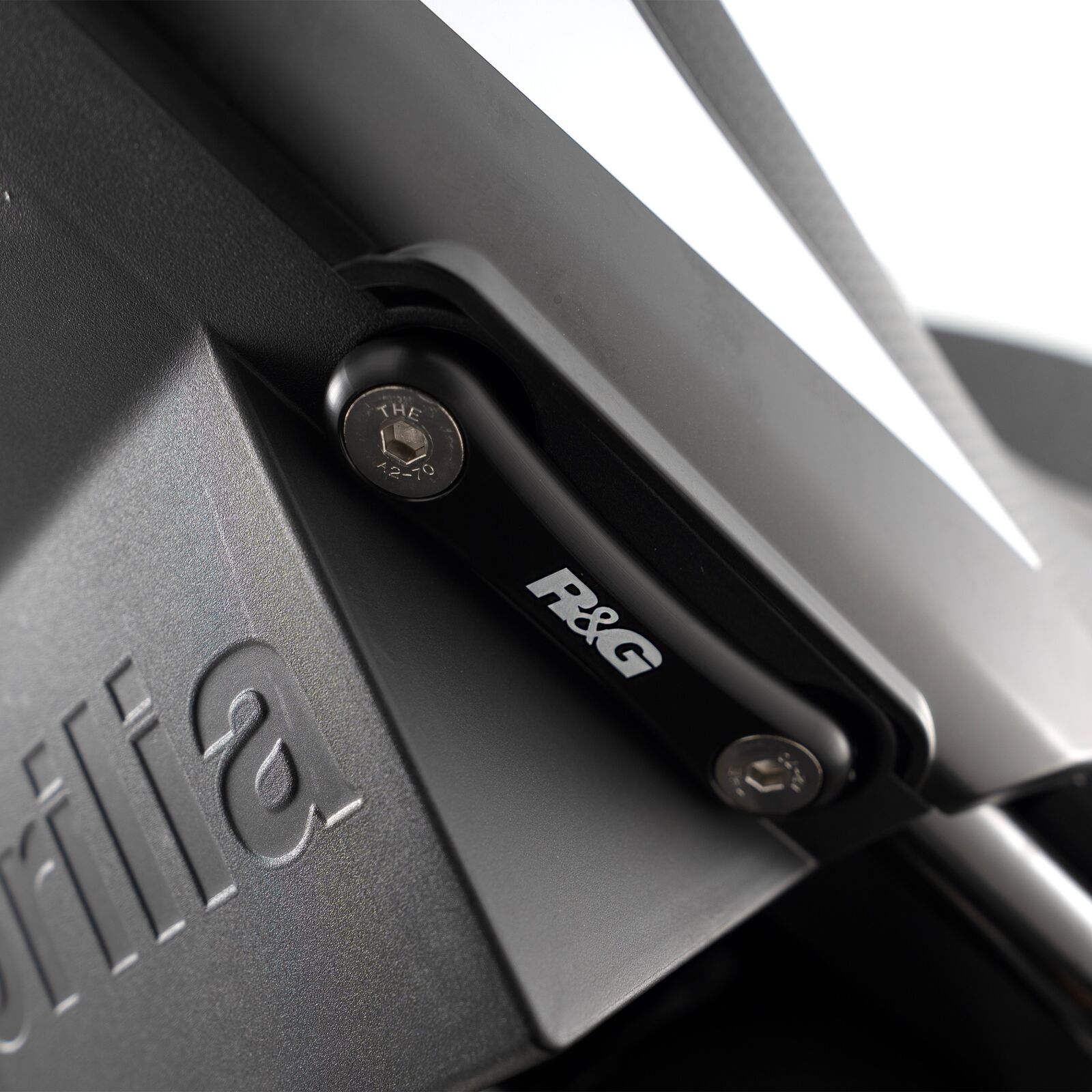 Once you have removed the pillion footrests, fill the void left behind and cover those otherwise exposed holes in the sub-frame with the R&G blanking plates.