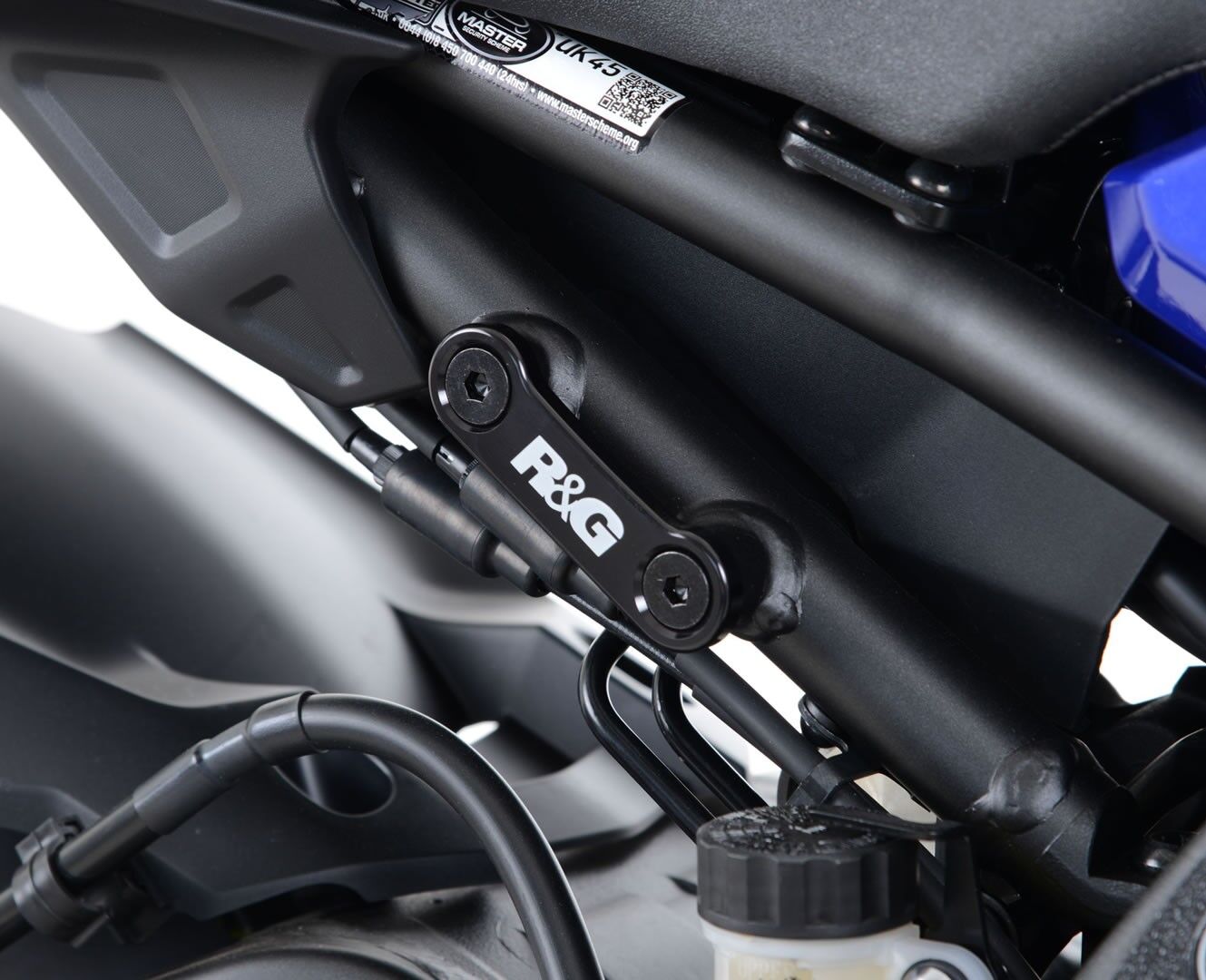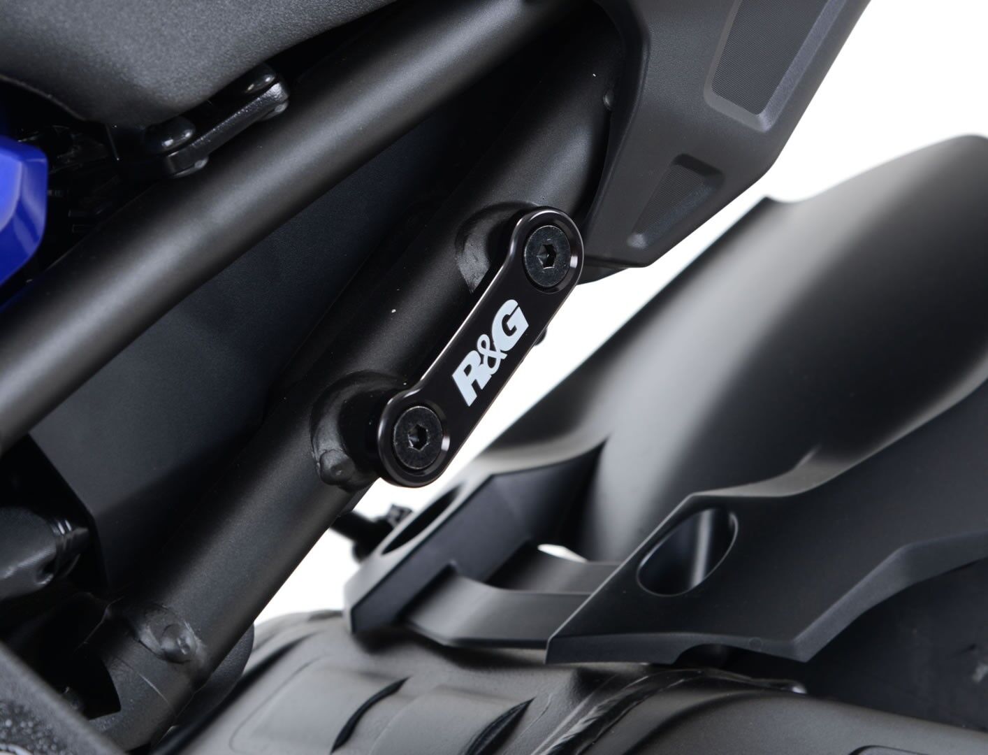 Once you have removed the pillion footrests, fill the void left behind and cover those otherwise exposed holes in the sub-frame with an R&G blanking plate.