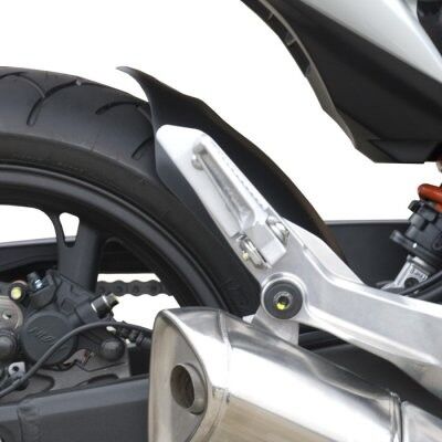 This Rear Tyre Hugger is suitable for Honda CBR600F and Honda CB600 Hornet (2011 models onward) Stylish in design, it is a direct bolt-on accessory, attaching to mounting points on the swingarm amongst others to ensure a good solid base. Designed to suit the profile and style of the bike and contour of the rear tyre, it protects the undertray and shock of the Honda 600's from damage, dirt and debris kicked up by the rear tyre as well as conserving heat in the rear tyre. Made in the U.K.