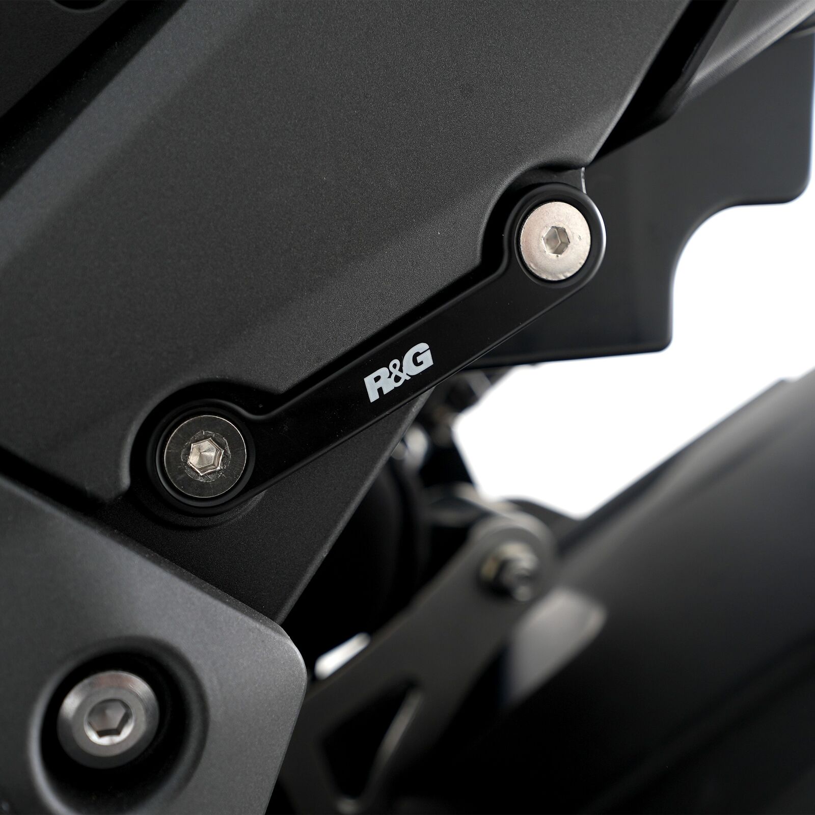 Once you have removed the pillion footrests, fill the void left behind and cover those otherwise exposed holes in the sub-frame with the R&G blanking plate.