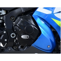 This right-hand side R&G Engine Case Cover is compatible with the Suzuki GSX-R1000 L7 ('17- '24)  / GSX-R1000R '17- '24 models, protecting the exposed Clutch/Idle Gear casing (RHS) of the GSX-R1000 from damage in cthe event of a crash, slide or drop.