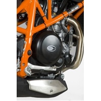 This Engine Case Cover (Right Hand Side) is suitable for the  KTM 690 Duke/R '12-, 690 SMC '12-, 690 SMCR '12- and Husqvarna 701 Enduro/Supermoto '16- '24 & GASGAS SM700 '22- models. These exciting new Engine Case Covers have been developed in collaboration with selected race teams and crash tested within the R&G Racing Suzuki GSX-R Trophy. Crafted from 4mm polypropylene for strength, durability and good looks, they complement our crash protectors perfectly. The covers simply bolt on over the original engine casing so no messing with glue or removing anything. Slimline for maximum ground clearance, ultra lightweight, matt finish and protecting one of the most vulnerable parts of the machine, these could save you £'s in the event of an accident ... Ever seen the prices of a new engine casing or the cost of removing debris from your engine? Made in the U.K.