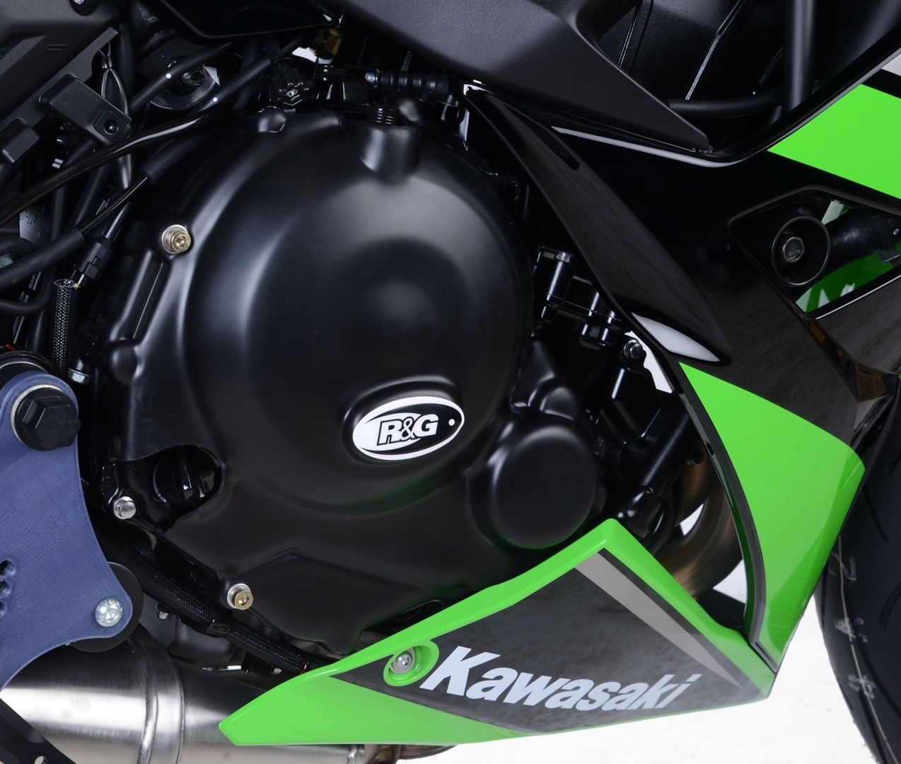 This right hand side R&G Engine Case Cover fits the Kawasaki Z650 '17- & Ninja 650 '17- '24, protecting the exposed engine case covers from damage in the event of a crash, slide or drop.