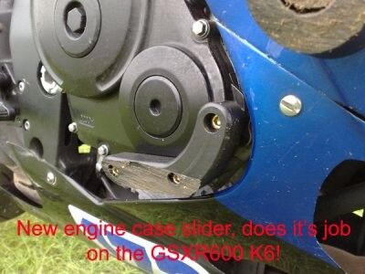 This engine case slider for the Suzuki GSX-R600 K6 onwards and the GSX-R750 K6 onwards fits neatly and easily to the existing engine case and will provide additional protection in the event of a drop. Fits right hand side only (left hand side engine case slider available - see related products below). R&G engine case sliders complement the R&G crash protectors and the additional range of products that we offer for these bikes.