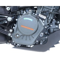 This engine case slider, specially designed to protect the right-hand side engine casing of the KTM Duke 125 '17-'23, RC125 '17-& Svartpilen 125 '21-   models in the event of a crash or slide.