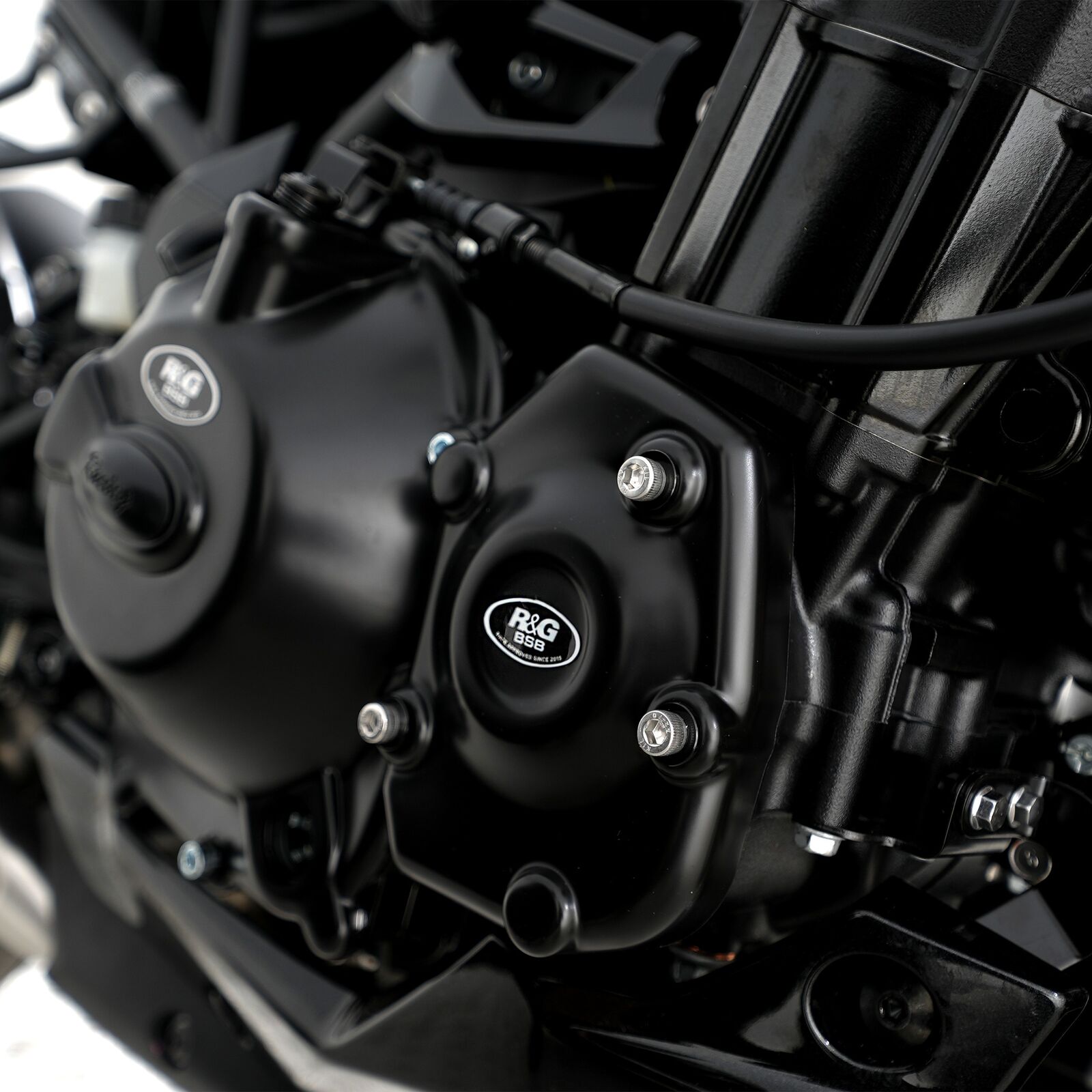 This right hand side R&G Engine Case Cover fits the Kawasaki Z900 '17- , protecting the exposed Pulse case cover (RHS) of the Z900 from damage in the event of a crash, slide or drop.
