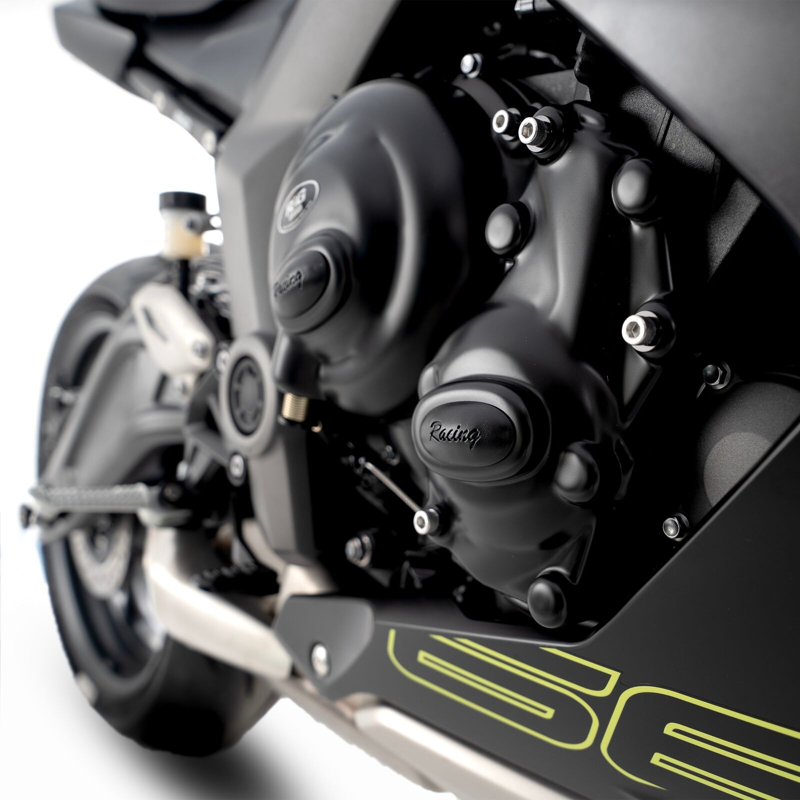 This right-hand side R&G Race Series Engine Case Cover fits the Triumph Trident 660 '21-, Daytona 660 '24- (RHS pulse cover) models, protecting the exposed casing from damage in the event of a crash, slide, or drop.
