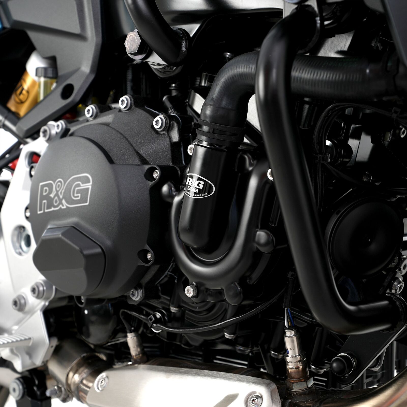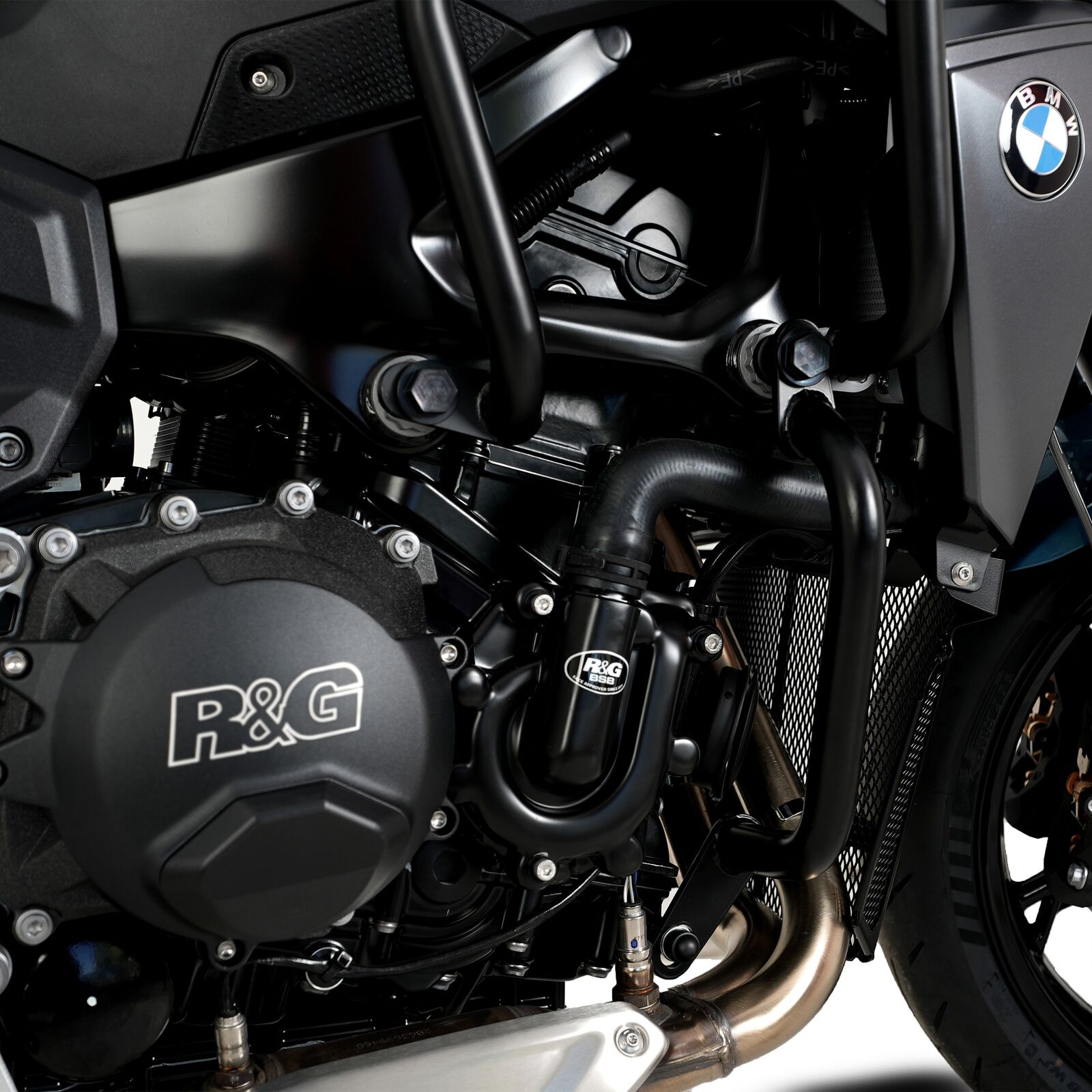 This right-hand side R&G Race Series Engine Case Cover fits the BMW F800GS '24-/ F900R/ XR '20-, F900 GS '24- models, protecting the exposed casing from damage in the event of a crash, slide or drop.