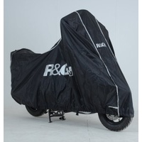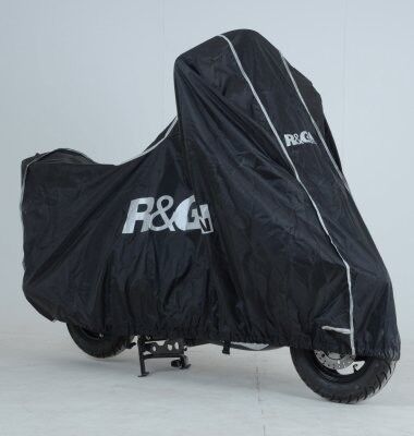 The R&G Urban/Scooter Outdoor Cover fits on scooters with/without topboxes installed. Specially designed to include many new features. Based off our original award winning Superbike Cover (BC0006) design and made of the same quality waterproof material, the cover also features elasticated rim and Belly straps as standard ensure the cover stays fixed in place and stops wind, mud or water getting up inside the cover and ensure a tight fit around the base. Front and rear chain loops for security devices covered by a velcro® closing flap to ensure the cover is fully waterproof, high-visibility reflective logos and trim piping for additional visibility at night and includes a specially designed pouch at the rear for the topbox, which folds away when not in use.