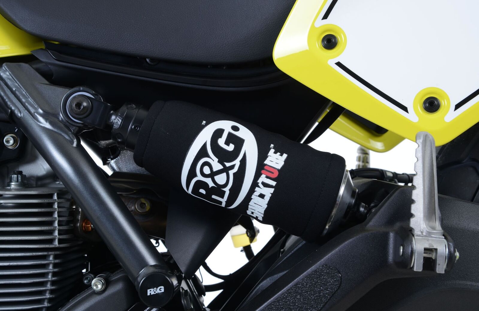 The Shocktube® is a high impact waterproof vented tube made from top quality bonded 100% CR Neoprene™ which is double lined with stretch nylon on both sides. Completely enclosing the motorcycle's rear shock absorber(s) and spring, Shocktube® prevents damage from road salt, water spray, stone chipping, dust and dirt. The Shocktube® can be fitted to most motorcycles with either monoshock or twin shock systems quickly, without the need to remove the shock absorber! Continually protecting the rear shock absorber and spring, while still maintaining the condition of the shock for a substantially extended period of time, throughout the life of the motorcycle. Patent No: GB2459728