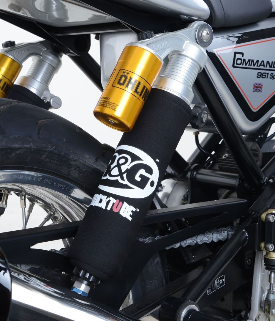The Shocktube® is a twinpack of high impact waterproof vented tube made from top quality bonded 100% CR Neoprene™ which is double lined with stretch nylon on both sides. Completely enclosing the motorcycle's rear shock absorber(s) and spring, Shocktube® prevents damage from road salt, water spray, stone chipping, dust and dirt. The Shocktube® can be fitted to most motorcycles with either monoshock or twin shock systems quickly, without the need to remove the shock absorber! Continually protecting the rear shock absorber and spring, while still maintaining the condition of the shock for a substantially extended period of time, throughout the life of the motorcycle. Patent No: GB2459728