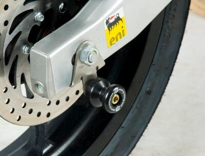 Are they cotton reels or spindle sliders? Well they are both really!! The Cotton Reel is mounted to a special, clear-anodised stainless steel bracket (included with the kit). The product will give protection to the swingarm area in most crashes. Also the bike can be lifted on the Cotton Reels, using a paddock stand with hooks (suggest R&G code SH0001). These cotton reels specifically designed to fit the Aprilia RS4 125 (2011-) / RS 125'21- & Tuono 125 '17- also have the ability to be fitted with a toe guard thanks to a bracket already present on the cotton reel bracket. An R&G Toe Guard (not included) can be install into this product with no modification to the swingarm required, it simply screws into the bottom of the cotton reel bracket.