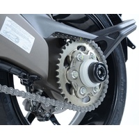 This Spindle Blanking Plate Kit is for Spindle Blanking Plate Kit for MV Agusta Rivale/ Dragster 800/ F4 '10-, Stradale 800 '15-, Brutale 800RR '18-, 800 Superveloce ’20 and the Brutale 1000RR ’20- / Brutale Oro ’20-, Brutale 1000RS '24-, Dragster 800RR '21- models. This product covers exposed holes in the rear spindle, nuts and lock pins keeping them clean and free of debris buildup. A silver-finished spacer is complimented by a black cap/cover which has white graphics on it, for a superb finish. Sold as a kit containing parts for both left and right-hand sides.