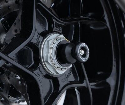 These spindle sliders mount directly onto the rear spindle bolt and nut on the KTM 1290 Super Duke R and KTM Super Duke 1290 GT,KTM 1390 Super Duke R (Evo) 2024 , providing both crash protection to the rear components, protecting the swingarm and components, like the brakes and drivetrain in the event of a crash or drop but also functioning as paddock stand bobbins, allowing the bike to be lifted up on a Rear Paddock Stand for cleaning and maintenance.