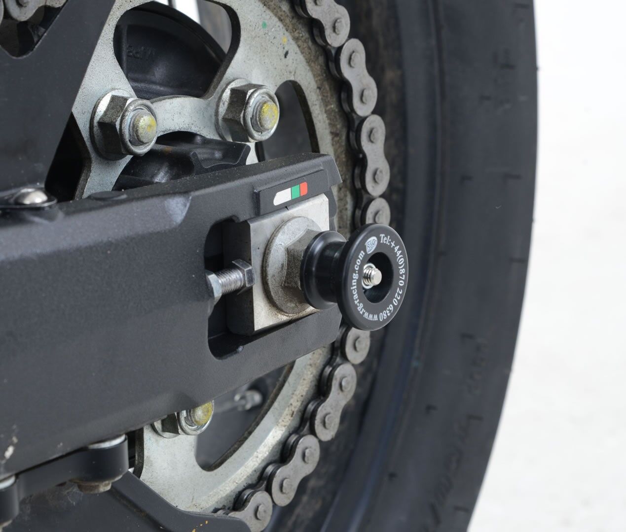 These spindle sliders mount directly onto the rear spindle bolt and nut on the Honda Africa Twin '16- and the Africa Twin Adventure Sports '18-'19 providing both crash protection to the rear components, protecting the swingarm and components, like the brakes and drivetrain in the event of a crash or drop but also functioning as paddock stand bobbins, allowing the bike to be lifted up on a Rear Paddock Stand for cleaning and maintenance. The best of both worlds!