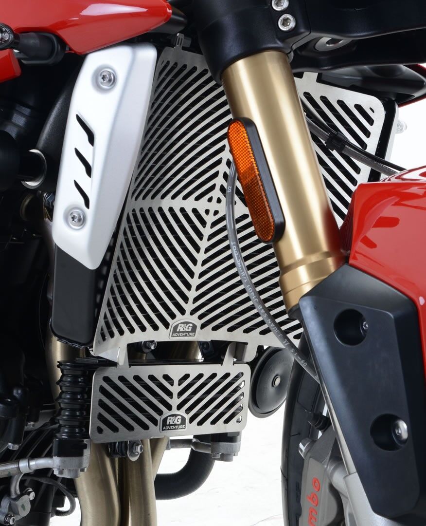 The R&G Stainless Steel Oil Cooler Guard series is a more rugged version of our existing aluminium guard. Constructed from 1mm stainless steel sheet allows the guard to be incredibly strong and impervious to rust – perfect for bikes and riders who may tackle demanding terrains and conditions. The laser-cut grills are designed for maximum airflow to the Oil Cooler so that cooling isn't compromised; the Oil Cooler Guard is as good looking as it is purposeful.