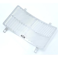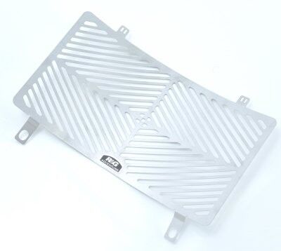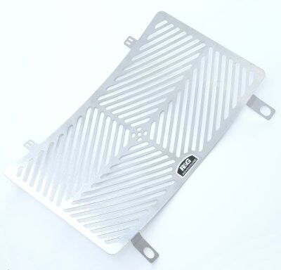 New for 2013. The R&G Stainless Steel Radiator Guard series is a more rugged version of our existing aluminium offering and are aimed particularly for Adventure bikes. Constructed from 1mm stainless steel sheet allows the guard to be incredibly strong and impervious to rust – perfect for bikes and riders who may tackle demanding terrains and conditions. The laser-cut grills are designed for maximum airflow to the radiator so that cooling isn't compromised; the Radiator Guard is as good looking as it is purposeful. The CNC finished guard attaches easily and quickly to the front of the radiator, either by utilizing the existing mounting bolts or cable tied on. No modifications need to be made to the bike to install. This model is suitable for the KTM 990 Superduke ONLY. (Picture is for illustration purposes only)