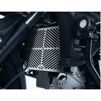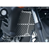 New for 2013. The R&G Stainless Steel Radiator Guard series is a more rugged version of our existing aluminium offering and are aimed particularly for Adventure and Touring bikes. Constructed from 1mm stainless steel sheet allows the guard to be incredibly strong and impervious to rust – perfect for bikes and riders who may tackle demanding terrains and conditions. The laser-cut grills are designed for maximum airflow to the radiator so that cooling isn't compromised; the Radiator Guard is as good looking as it is purposeful. The CNC finished guard attaches easily and quickly to the front of the radiator, either by utilizing the existing mounting bolts or cable tied on. No modifications need to be made to the bike to install. This model protects the Radiator of the Suzuki V-Strom 650 ('12- onwards models) and Suzuki V-Strom 650 XT 15- models. (Picture is for illustration purposes only)