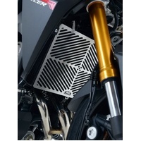 The R&G Stainless Steel Radiator Guard series is a more rugged version of our existing aluminium offering and are aimed particularly for Adventure and Touring bikes. Constructed from 1mm stainless steel sheet allows the guard to be incredibly strong and impervious to rust – perfect for bikes and riders who may tackle demanding terrains and conditions. The laser-cut grills are designed for maximum airflow to the radiator so that cooling isn't compromised; the Radiator Guard is as good looking as it is purposeful. The CNC finished guard attaches easily and quickly to the front of the radiator, either by utilizing the existing mounting bolts or cable tied on. No modifications need to be made to the bike to install. This model protects the Radiator of the Yamaha MT-09 (FJ-09), MT-09 Tracer (FZ-09) and XSR900 '16-'21 models. This radiator guard is fully compatible with the Yamaha radiator side covers.