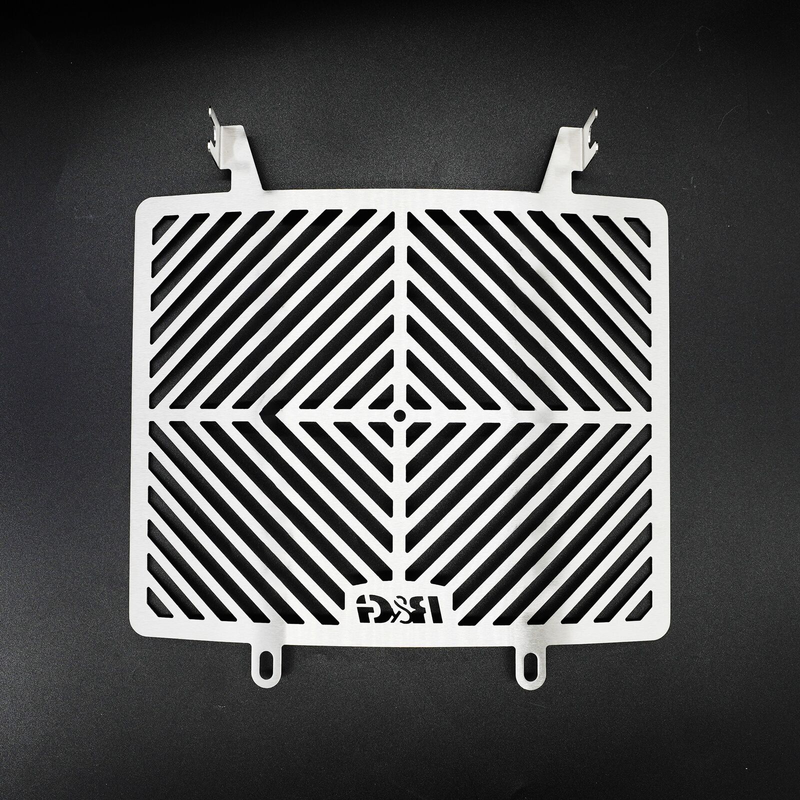 The R&G Stainless Steel Radiator Guard series is a more rugged version of our existing aluminium offering and are aimed particularly at Adventure and Touring bikes. Constructed from stainless steel allowing the guard to be incredibly strong and impervious to rust – perfect for bikes and riders who may tackle demanding terrains and conditions. The laser-cut grills are designed for maximum airflow to the radiator so that cooling isn't compromised; the Radiator Guard is as good looking as it is purposeful. The CNC finished guard attaches easily and quickly to the front of the radiator, either by utilizing the existing mounting bolts or cable tied on. No modifications need to be made to the bike to install.