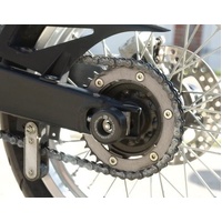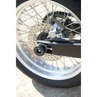 This pair of protectors fits into the side of the swing arm and helps to protect the swingarm, rear calipers, discs and drive sprocket from damage in the event of a drop of crash.