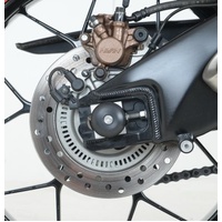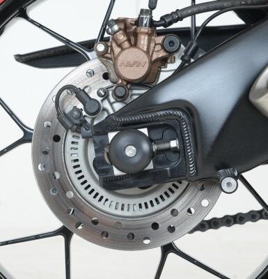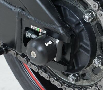 This pair of protectors fits into the side of the swing arm spindle and thanks to their expanding design are held securely inplace. Helping to protect the swingarm, rear calipers, discs and drive sprocket from damage in the event of a drop of crash.