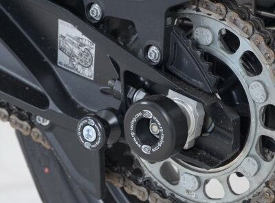 These swingarm protector kit is suitable for the  KTM 1090 Adventure '17-, KTM 1190 Adventure '13- and the 1290 Super Adventure '15 - '20 models. This pair of protectors fits into the side of the swing arm spindle and thanks to their expanding design are held securely in place. Helping to protect the swingarm, rear calipers, discs and drive sprocket from damage in the event of a drop of crash. [Pictured with Cotton Reels (CR0009) not included in kit!]