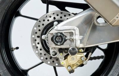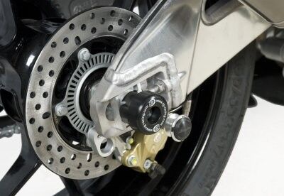 These swingarm protector kit is suitable for the Aprilia RSV4 and Aprilia Tuono V4 1000/1100 models. This pair of protectors fits into the side of the swing arm and helps to protect the swingarm, rear calipers, discs and drive sprocket from damage in the event of a drop of crash.