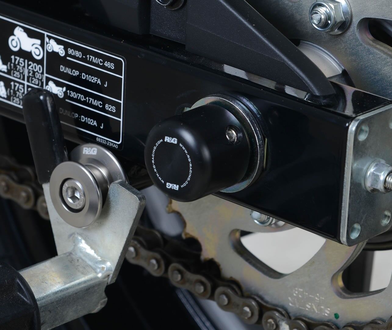 The R&G swingarm protectors provide protection for vulnerable rear end components in the event of a crash, drop or slide. Replaceable High-Density Polyethylene (HDPE) bobbins are used for superior impact and abrasion protection that helps slow the motorcycle to a smooth, controlled stop. This essential protector will keep valuable components off the ground to prevent some seriously expensive repairs after a fall. Installation is simple with no permanent modification to the bike needed.