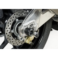 These swingarm protector kit is suitable for the Aprilia RSV4 and Aprilia Tuono V4 1000/1100 models. This pair of protectors fits into the side of the swing arm and helps to protect the swingarm, rear calipers, discs and drive sprocket from damage in the event of a drop of crash.