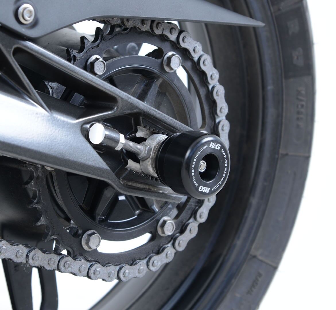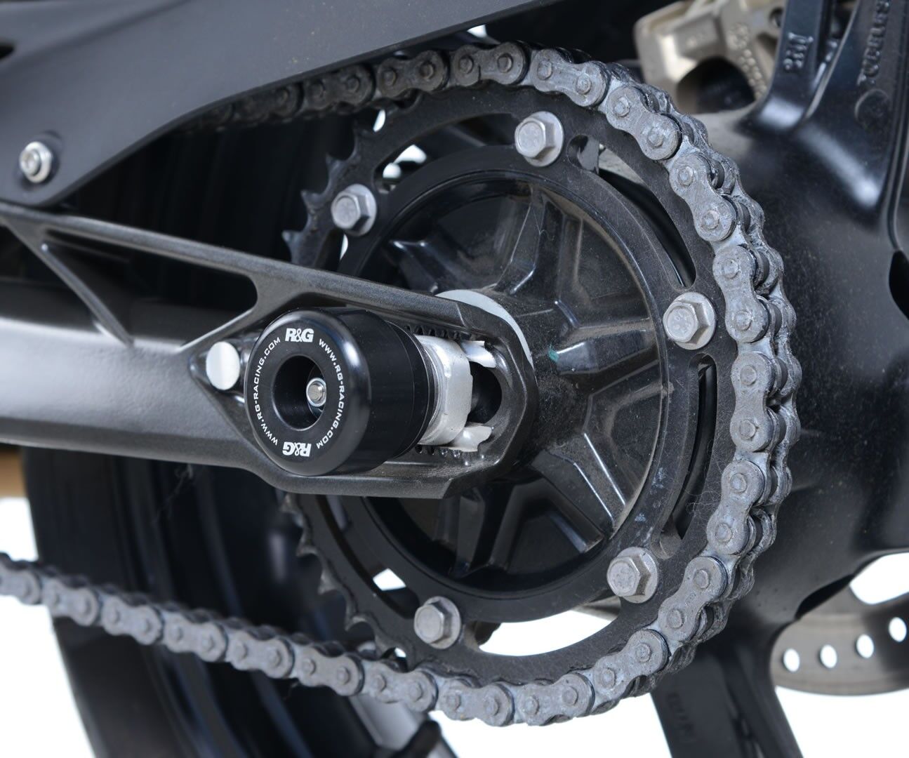 These Swingarm Protectors for BMW G310R / GS '17-, G310RR '22- & TVS Apache RR 310 '21- models, fit into the rear spindle, looking great and protecting the swingarm. Held in place thanks to the stainless steel connecting bar design means installation is a breeze taking only minutes. They help protect the core, expensive components found around the swingarm area, such as the brake calliper, disc, sprocket and the swingarm itself!