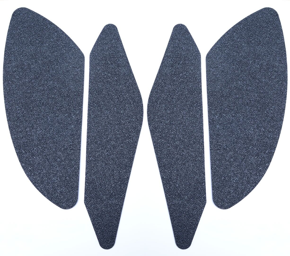R&G Tank Traction Pad kits are available for many different bike styles and brands, with new applications released regularly. The unique R&G Traction Grip texture was specifically designed to be both soft and durable, providing the rider with the grip and feel he/she needs to assist in better bike control, enabling the rider to maintain a stable body position while cornering and braking, whilst also relieving fatigue and providing the rider with complete confidence allowing him/her to fully focus on the road (or track) ahead instead of slipping and sliding on the tank. Each Tank Traction Pad kit is supplied with precision pre-cut adhesive pieces, designed to fit the intended bike, typically in either 2, 4 or 6 pieces (in total) depending on the shape of the tank and adjoining fairing. The high-strength adhesive backing ensures a highly durable product that will stay exactly where you put it, as well as not affecting or damaging paintwork. Each R&G Tank Traction Pad kit is available in black and ultra-clear finishes to blend into your bike’s paintwork or stand out, depending on your preference. R&G Tank Traction Grips work in both wet and dry conditions and is equally at home on the track as it is on the commute home! Please note: R&G Tank Traction Grips now come with a 25mm diameter stick on emblem. This Tank Traction Pad has been specially designed for the Yamaha YZF-R1 '04-'06. Made in the UK.