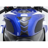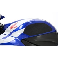 R&G Tank Traction Grip kits are available for many different bike styles and brands, with new applications released regularly. The unique R&G texture was specifically designed to be both soft and durable, providing the rider with the grip and feel he/she needs to assist in better bike control, enabling the rider to maintain a stable body position while cornering and braking, whilst also relieving fatigue and providing the rider with complete confidence allowing him/her to fully focus on the road (or track) ahead instead of slipping and sliding on the tank. Each Tank Traction Grip kit is supplied with precision pre-cut adhesive pieces, designed to fit the intended bike, typically in either 2, 4 or 6 pieces (in total) depending on the shape of the tank and adjoining fairing. The high-strength adhesive backing ensures a highly durable product that will stay exactly where you put it, as well as not affecting or damaging paintwork. Each R&G Tank Traction Grip kit is available in black and ultra-clear finishes to blend into your bike’s paintwork or stand out, depending on your preference. R&G Traction Grips work in both wet and dry conditions and is equally at home on the track as it is on the commute home! Please note: R&G Tank Traction Grips now come with a 25mm diameter stick on emblem. This Tank Traction Grip has been specially designed for the Honda CBR600RR '07-'12. Made in the UK.