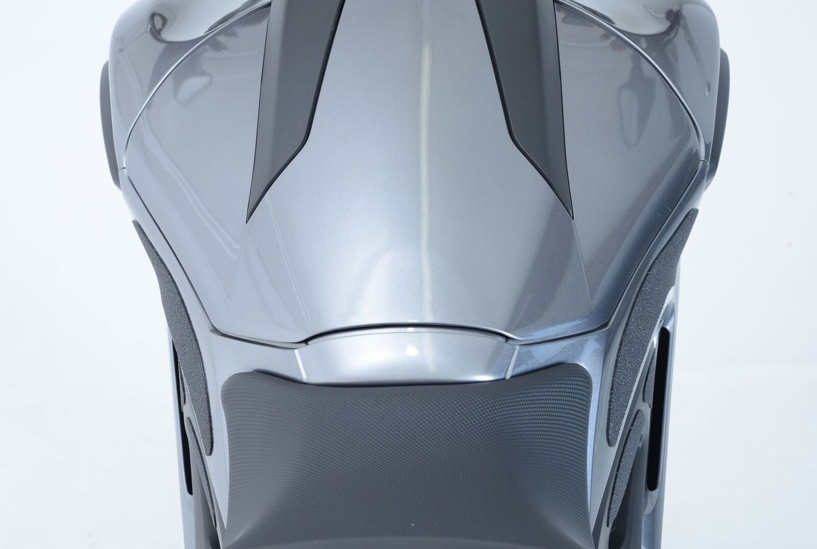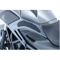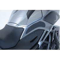 R&G Tank Traction Grip kits are available for many different bike styles and brands, with new applications released regularly. The unique R&G Traction Grip texture was specifically designed to be both soft and durable, providing the rider with the grip and feel he/she needs to assist in better bike control, enabling the rider to maintain a stable body position while cornering and braking, whilst also relieving fatigue and providing the rider with complete confidence allowing him/her to fully focus on the road (or track) ahead instead of slipping and sliding on the tank. Each Tank Traction Grip kit is supplied with precision pre-cut adhesive pieces, designed to fit the intended bike, typically in either 2, 4 or 6 pieces (in total) depending on the shape of the tank and adjoining fairing. The high-strength adhesive backing ensures a highly durable product that will stay exactly where you put it, as well as not affecting or damaging paintwork. Each R&G Tank Traction Grip kit is available in black and ultra-clear finishes to blend into your bike’s paintwork or stand out, depending on your preference. R&G Traction Pads work in both wet and dry conditions and is equally at home on the track as it is on the commute home! Please note: R&G Tank Traction Grips now come with a 25mm diameter stick on emblem. This Tank Traction Grip Kit has been specially designed for the Honda NC700X '12-'15 / NC750X '13-'15. Made in the UK.