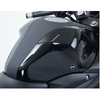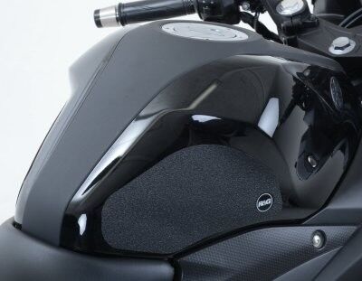 R&G Tank Traction Grip kits are available for many different bike styles and brands, with new applications released regularly. The unique R&G Traction Grip texture was specifically designed to be both soft and durable, providing the rider with the grip and feel he/she needs to assist in better bike control, enabling the rider to maintain a stable body position while cornering and braking, whilst also relieving fatigue and providing the rider with complete confidence allowing him/her to fully focus on the road (or track) ahead instead of slipping and sliding on the tank. Each Tank Traction Grip kit is supplied with precision pre-cut adhesive pieces, designed to fit the intended bike, typically in either 2, 4 or 6 pieces (in total) depending on the shape of the tank and adjoining fairing. The high-strength adhesive backing ensures a highly durable product that will stay exactly where you put it, as well as not affecting or damaging the paintwork. Each R&G Tank Traction Grip kit is available in black and ultra-clear finishes to blend into your bike’s paintwork or stand out, depending on your preference. R&G Tank Traction Grips work in both wet and dry conditions and is equally at home on the track as it is on the commute home! Please note: R&G Tank Traction Grips now come with a 25mm diameter stick on emblem. This Tank Traction Grip kit has been specially designed for the Yamaha R25 '14-'18, MT-25 '15-, R3 '15-'18 & MT-03 '16-'19 models. Made in the UK.