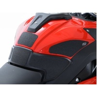 R&G Tank Traction Grip kits are available for many different bike styles and brands, with new applications released regularly. The unique R&G Tank Traction Grip texture was specifically designed to be both soft and durable, providing the rider with the grip and feel he/she needs to assist in better bike control, enabling the rider to maintain a stable body position while cornering and braking, whilst also relieving fatigue and providing the rider with complete confidence allowing him/her to fully focus on the road (or track) ahead instead of slipping and sliding on the tank. Each Tank Traction Grip kit is supplied with precision pre-cut adhesive pieces, designed to fit the intended bike, typically in either 2, 4 or 6 pieces (in total) depending on the shape of the tank and adjoining fairing. The high-strength adhesive backing ensures a highly durable product that will stay exactly where you put it, as well as not affecting or damaging the paintwork. Each R&G Tank Traction Grip kit is available in black and ultra-clear finishes to blend into your bike’s paintwork or stand out, depending on your preference. R&G Tank Traction Grips work in both wet and dry conditions and is equally at home on the track as it is on the commute home! Please note: R&G Tank Traction Grips now come with a 25mm diameter stick on emblem. This 6 piece R&G Tank Traction Grip set has been specially designed for the BMW S1000XR '15-'19. Made in the UK.